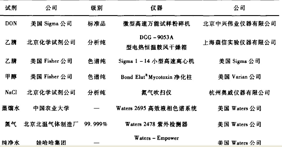 測(cè)定方法依據(jù)國標(biāo)GB/T23503一2009《食品中脫氧雪腐鐮刀菌烯醇的測(cè)定-免疫親和層析凈化高效液相色譜法》,采用Waters2695高效液相色譜系統(tǒng)(Waters2478紫外檢測(cè)器)檢測(cè),C18色譜柱(3.gmmx150mm,5卜m)凈化,流動(dòng)相使用乙睛/甲醇/水(5乃/90,v/V/V),流速為1.omUmin.檢測(cè)條件為:柱溫40℃,進(jìn)樣量10林L,紫外檢測(cè)波長22onm.