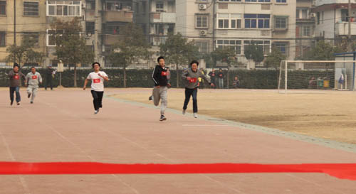 近了,更近了,王宏文的追跑拉近了兩個人的距離,劉梓軒從場下拉拉隊的喊聲里似乎感覺到情況不妙,只見他閉起雙眼,高臺雙腿,更加賣力的奔跑。就在大家猜測此次比賽到底誰是冠軍的時候,沒想到劉梓軒和王宏文竟一同闖過了紅線,成績并列第一。比賽結束,兩位領隊熱情的擁抱,這是本次活動最讓人意想不到的一幕,場下的歡呼聲表達了大家的驚喜。