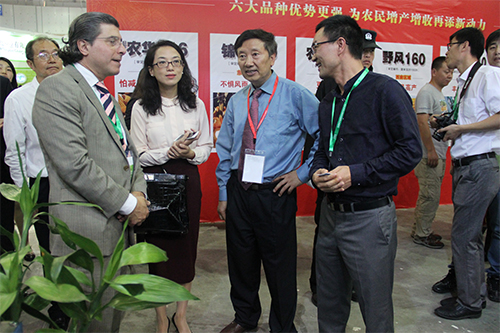 種子雙交會期間,農業部種子管理局局長張延秋、副局長馬淑萍一行還帶領前來參加中國-阿根廷種業交流峰會的阿根廷代表團參觀了托普云農展區。阿根廷國家種子研究所董事會主席拉威諾勒 萊英姆多農業工程師仔細觀摩了公司所展出的種子檢驗儀器和系統,并與陳渝陽總經理進行交流。