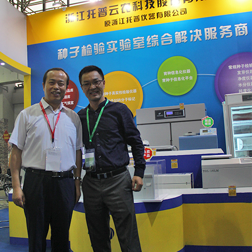 托普云農展出了自主研發生產的種子檢驗儀器和實驗室儀器。農業部種子管理局張延秋局長、杭大鵬書記一行,甘肅省種子管理局常宏局長一行先后蒞臨托普展區參觀指導,并與陳渝陽總經理進行交談,對托普云農在“互聯網+種業模式轉型變革”領域做出的成果給予肯定。