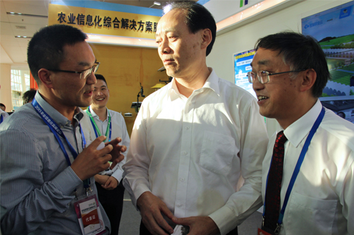 7日下午,農業(yè)部余欣榮副部長、農業(yè)部市場與經濟信息司王小兵副司長一行蒞臨托普展區(qū),就農業(yè)物聯(lián)網(wǎng)相關問題與陳渝陽總經理、朱旭華副總經理親切交流。余副部長表示,在科技飛速發(fā)展的今天,農業(yè)物聯(lián)網(wǎng)的系統(tǒng)及硬件技術已經相對成熟,但是除此之外,還要與射頻技術緊密結合,進一步拓展技術領域,提高農業(yè)物聯(lián)網(wǎng)的科技含量。