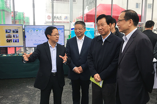圖為:朱旭華副總經理向王輝忠副書記一行介紹物聯網系統