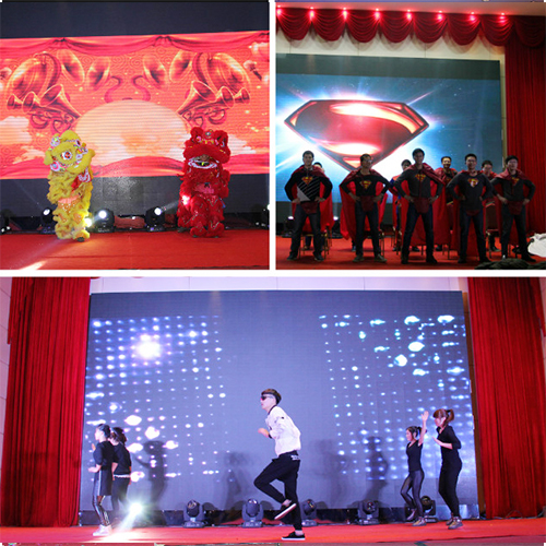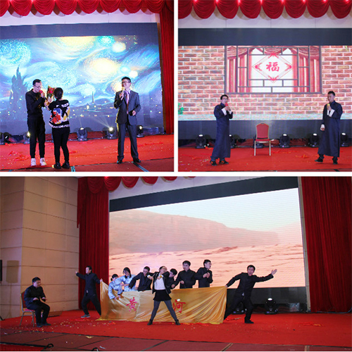 精彩紛呈的“新故事,新起點”2016新春年度盛典在四位支持人的深情開場中拉開序幕。熱情歡樂《金獅送�!奉I先開演,為大家送來了新年的祝福;勁舞《說愛就愛》,激情火爆,樂觀向上的精神風貌展現得淋漓盡致;研發(fā)團隊的舞臺劇《電影院那些事》演繹了公司研發(fā)人員豐富飽滿的內心世界。一首《飄雪》,瞬間將我們就帶入了純情浪漫模式。古箏演奏,優(yōu)雅悠揚;激情昂揚的《保衛(wèi)黃河》將整個晚宴推向高潮;銷售部老男人們的《群魔亂舞》讓大家更是樂的開懷暢飲!期間的互動環(huán)節(jié)及歡樂大抽獎讓全場氛圍熱烈而又充滿期待,高潮迭起!